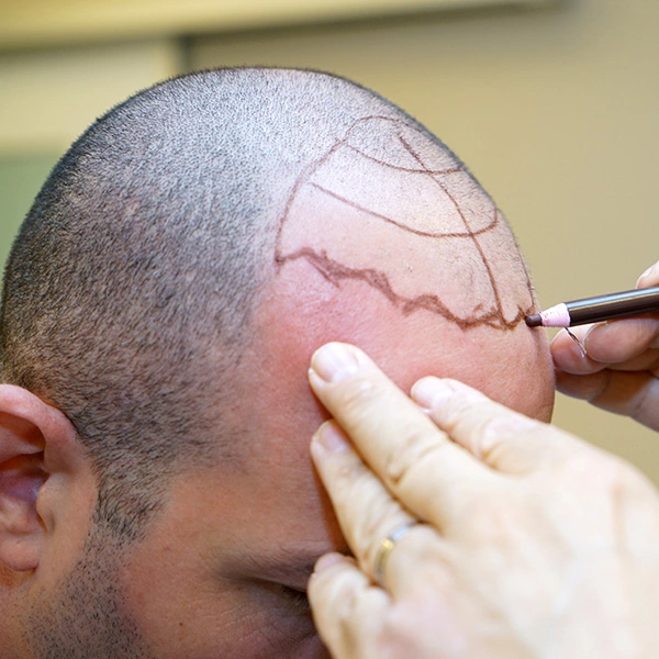 - Préparation du cuir chevelu : rasage et désinfection de la zone, suivi d’une anesthésie locale pour un confort optimal.